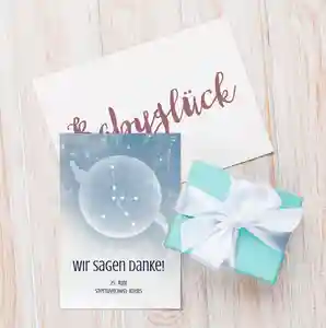 Ihre Danksagungskarte zur Geburt sollte natürlich auch einen ansprechenden und emotionalen persönlichen Text enthalten. Hier sind Ihrer eigenen Kreativität und Mitteilungsfreude keine Grenzen gesetzt. 60 verschiedene Motivvorschläge in vielen verschiedenen Farben stehen Ihnen zur Verfügung, die Papierqualität und der Druck wie gewohnt immer in feinster Qualität. Bestellen Sie heute online und halten Sie in wenigen Tagen Ihre Danksagungskarten versandbereit in Händen.